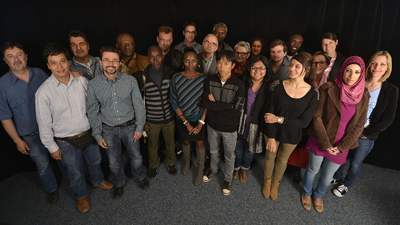 De gauche à droite, devant : Christian Brun (photographe indépendant mandaté par EQDA) / Dang Duc Tue (Vietnam) / Christophe Koessler, (Le Courrier) / Naye Marone (Senegal, Radio RFM) / Matilda Nzioki (Kenya, The Standard) / Chit Maung (Nasa) (Birmanie, Democratic Voice of Burma) / Uditha Hasinee Jayasinghe (Sri Lanka, Daily Financial Time) / Agathe Birden (Radio Fribourg) / Reem Khaldoun Masre (Palestine, freelance presse écrite) / De gauche à droite, derrière : Philippe Villard (L’Express-L’Impartial) / Serge Daniel (Mali, Africable) / Olivier Kohler (RTS TV) / Tristan Miquel (One FM) / Michel Bührer (journaliste freelance) / Kessava Packiri (La Liberté) / Eliane Ballif (FCJ) / Sereina Donatsch (ATS) / Nathan Jaccard (Colombie, La Semana) / Danio Darius (Haïti, Radio Magik 9) / Claire Neyroud (Métaphores) / Ariane Hasler (RTS radio) / Aurore Combremont (FCJ)